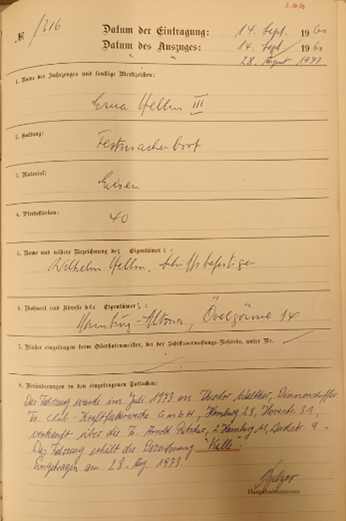 Doch ein Problem bleibt: Bis heute gibt es kein Dokument, das die Bauwerft der Erna Hellm III eindeutig als die Joachim Behrenswerft vom Finkenwerder Süderdeich ausweist. Eine solche schriftliche Bestätigung könnten die Auftrags- oder Lieferpapiere des Originalpropellers liefern