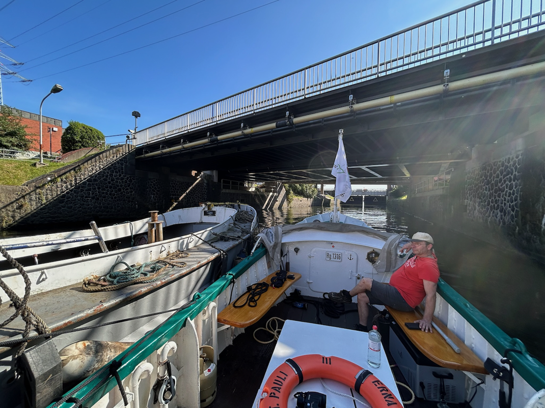 Nach Abschluss der Arbeiten war es schließlich an der Zeit, den Schlepper zurück in seinen Heimathafen nach Moorfleet zu bringen. Die ehrenvolle Aufgabe, Schleppi zur Endausrüstung zurückzuschleppen, fiel niemand Geringerem als Erna zu. Erna, mit ihrer robusten Bauweise und langjährigen Erfahrung im Hamburger Hafen, war prädestiniert für diese Aufgabe.