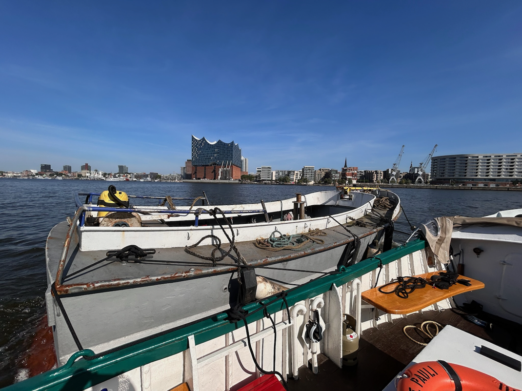 Bei strahlendem Sonnenschein und besten Wetterbedingungen zeigte sich Erna von ihrer besten Seite. Elegant und souverän nahm sie Schleppi in Schlepp und brachte ihn auf sicherem Kurs zurück nach Moorfleet. Die glatte Wasseroberfläche und die klare Luft schufen ideale Bedingungen für diese maritime Heimreise, bei der sich Ernas Fähigkeiten als unermüdlicher Arbeiter des Hafens erneut unter Beweis stellten.